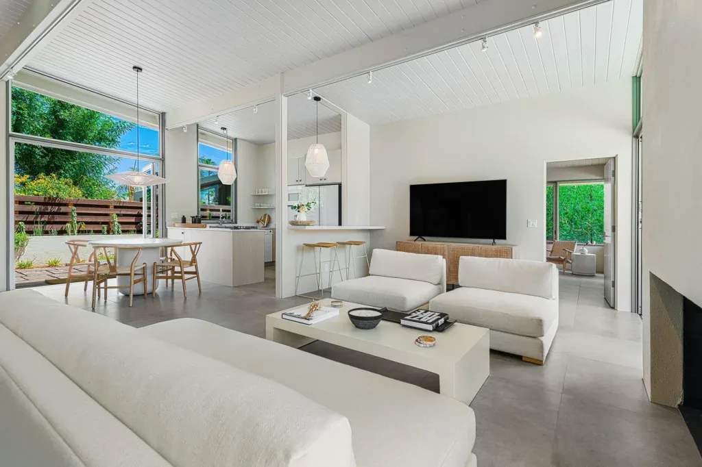 A tonal, textural, and minimal design by David Cameron Studio defines the interior living space that complements the 1955 design while offering comfortable 21st-century amenities and contemporary thoughts in the design field.