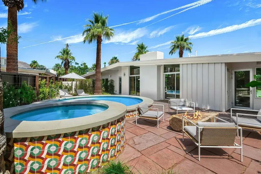 Immediately upon entering the home, you’ll feel a sense of tranquillity from the soft monochromatic coloration, minimal fireplace, glass pocket doors, and open kitchen. A quiet and beautiful take on mid-century brings this home forward for a new generation to enjoy all the desert has to offer.