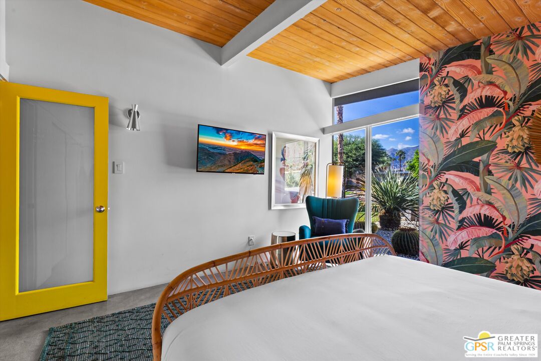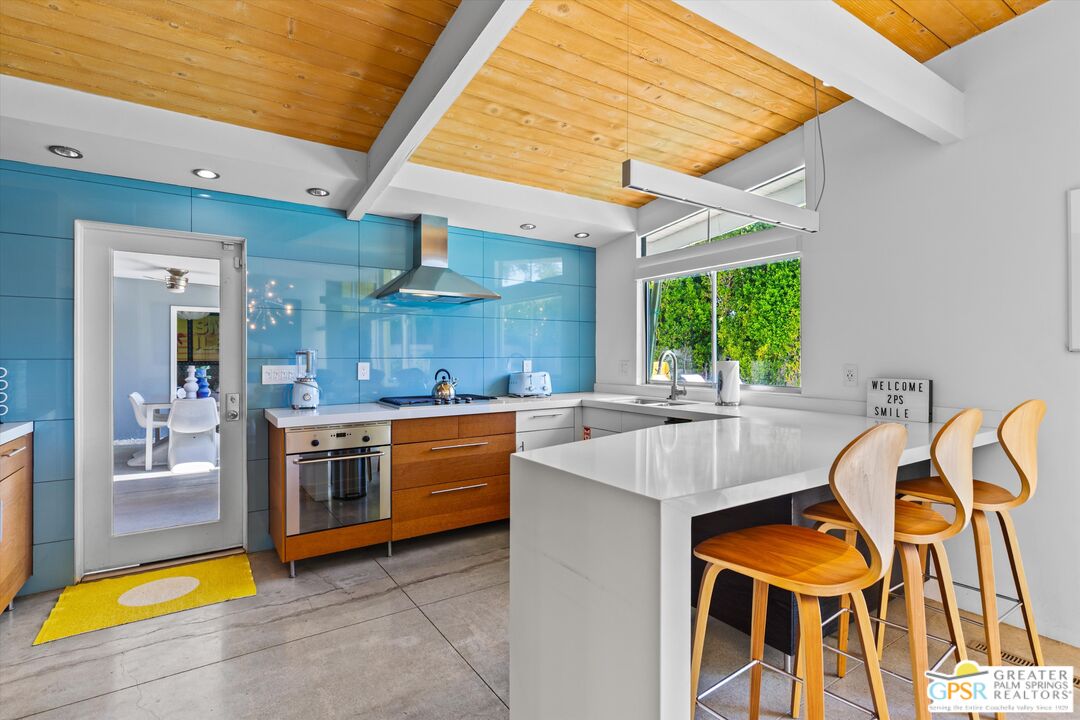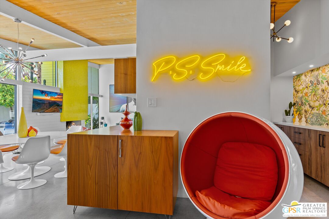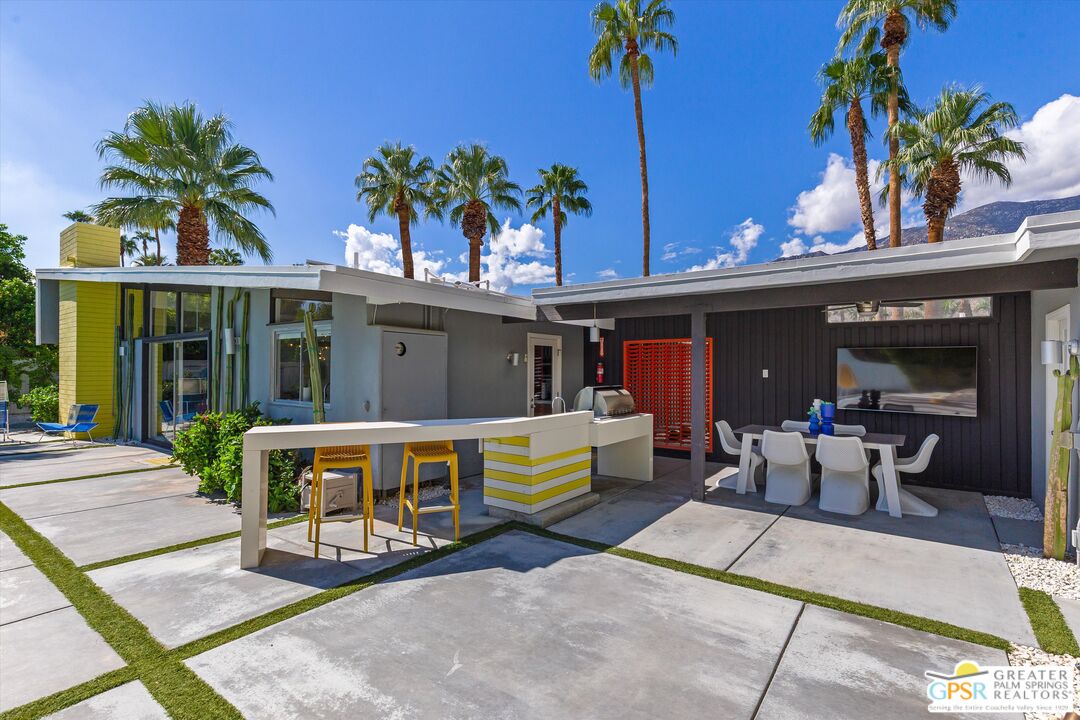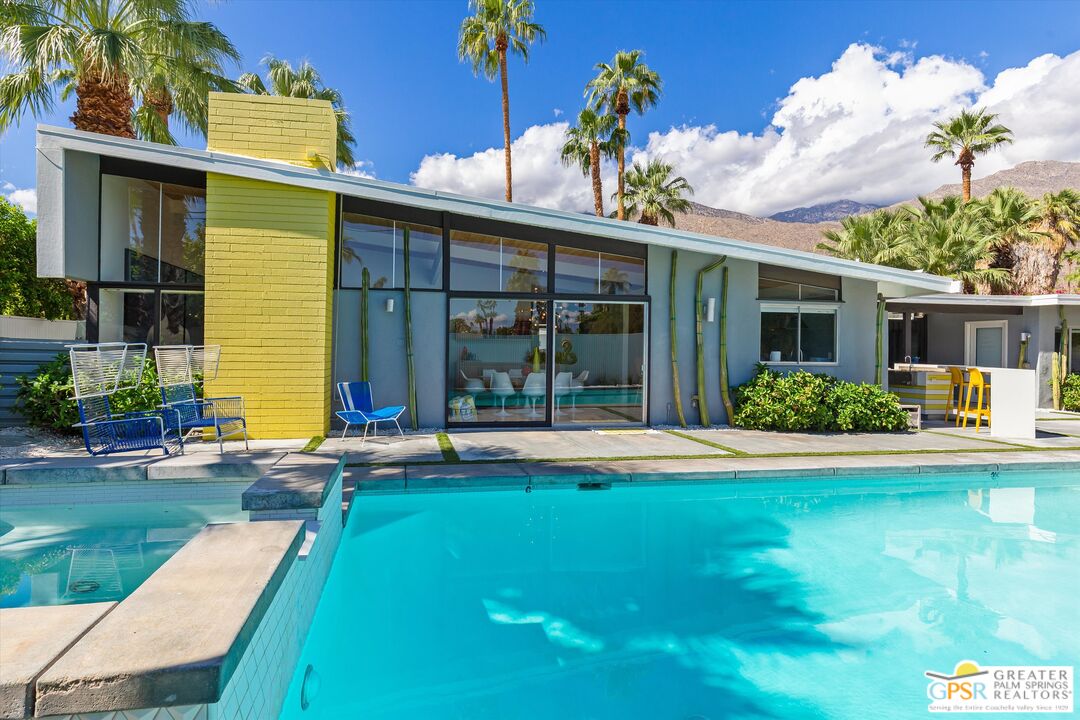 Renowned architect William Krisel is best known for his iconic butterfly roofline designs and likely created more of them than any other architect. This home is a perfect example of why his work was so important and continues to enthrall us to this day. The dramatic, soaring roof not only echoes the silhouette of the surrounding mountains but also allows for expansive clerestory windows that blur the line between indoors and out, flooding the interior with natural light and truly bringing the outdoors in. Krisel's designs for the Twin Palms neighborhood, developed in 1957 for the Alexander Construction Company, were elegantly simple, highly livable, and revolutionary in showing how cutting-edge architecture could be brought to the mainstream market. Now thoughtfully updated, this home invites you to experience Krisel's vision in a contemporary way. It features three bedrooms and two bathrooms, along with two additional bonus rooms accessed from the exterior, ideal for a studio, office, or guest space. The open-concept kitchen flows into the dining and living areas, which extend outward to a private pool, spa, and patio. A covered outdoor entertainment area with built-in BBQ completes this quintessential Palm Springs lifestyle experience.
